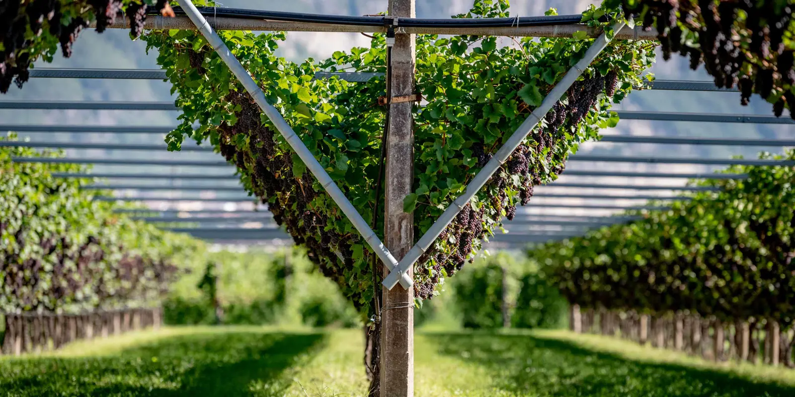 La pergola è il sistema di coltivazione tradizionale del Trentino che offre numerosi vantaggi: la superficie fogliare inclinata ed espansa favorisce un buon assorbimento della luce per la produzione di energia. Inoltre, funge da copertura dalla luce diretta per evitare bruciature nelle fasi di maturazione. Questo sistema di coltivazione prevede solo lavoro manuale, soprattutto durante le operazioni di raccolta.
